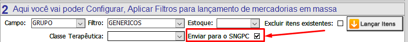 - Para que os medicamentos listados possam gerar um registro de inventário para o SNGPC é necessário marcar a flag 'Enviar para SNGPC';