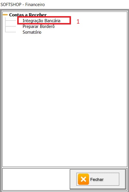 3 - Com a tela de funções aberta, clique em integração bancaria (1).