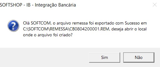 Clique em SIM se deseja ir ate a pasta do arquivo remessa, e NÃO para o contrário.