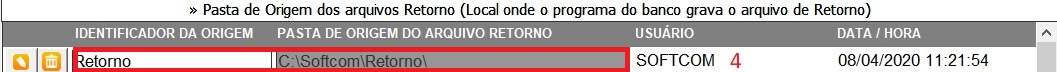 11.3 - O campo PASTA DE ORIGEM DOS ARQUIVOS RETORNO - Local onde o programa do banco grava o arquivo retorno, veja um preenchimento correto (4).