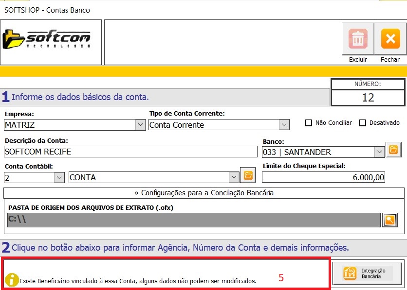 12 - Se tudo for preenchido de forma correta na tela de conta bancaria ficara conforme imagem (5).