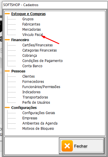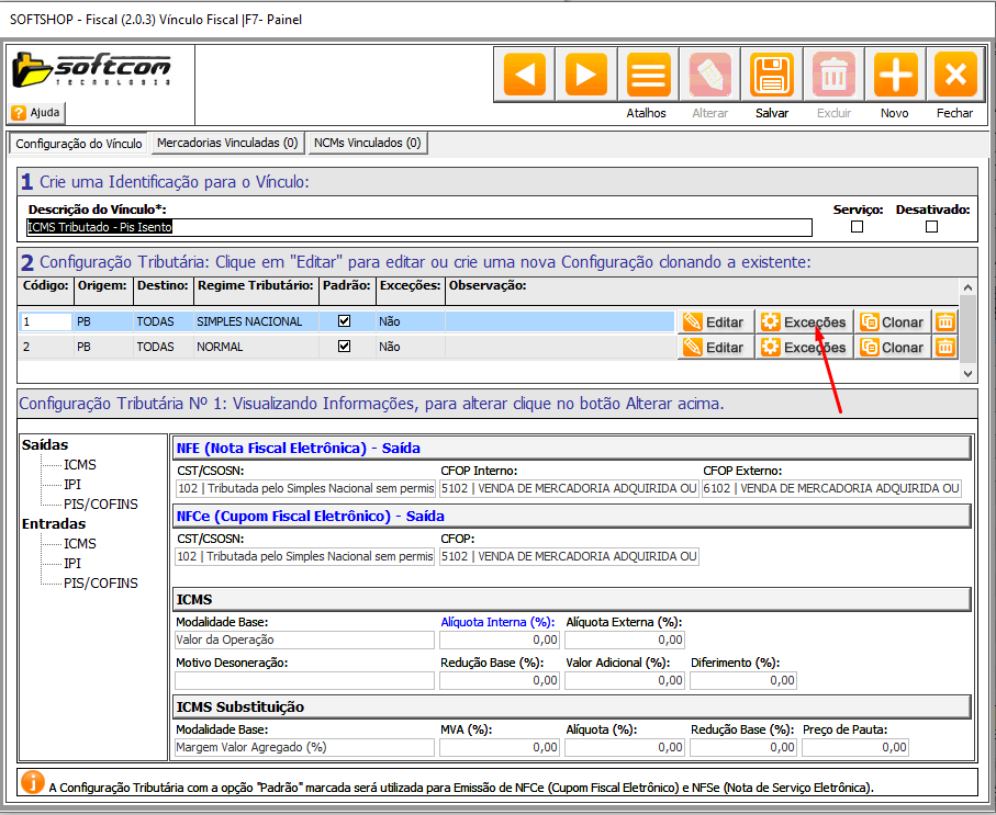 Softshop > Vínculo Fiscal > Exceções: Como utilizar?