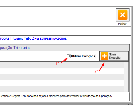 2.0 Selecionar a configuração tributária que deseja criar as exeções.