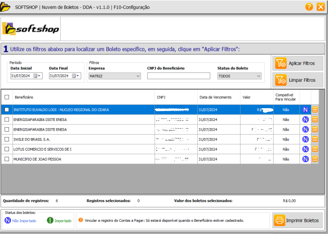 Softshop > DDA: Posso imprimir um boleto gerado para o meu CNPJ através do painel Nuvem de Boletos - DDA?