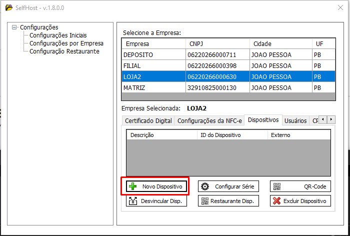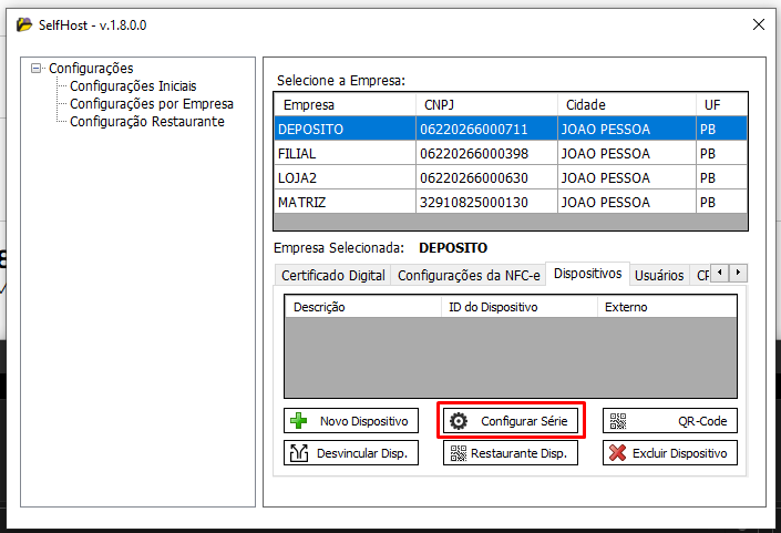 1.3. Vá em Configurações por Empresa, selecione a empresa que vai ser configurada e Configure a Série.