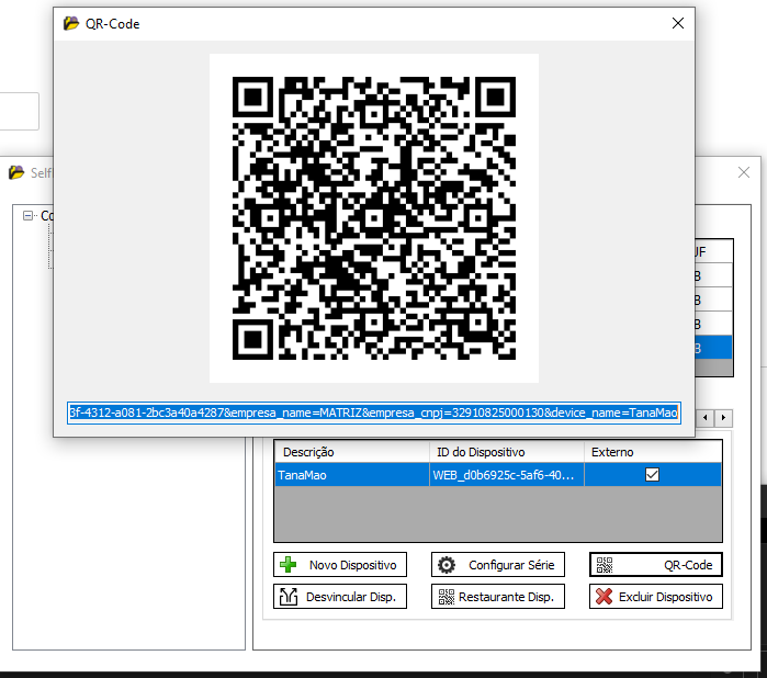 1.4. Marque a flag Externo e clique em QR-Code, selecione qualquer ip identificado. E copie o endereço do QR-Code.