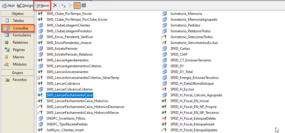 3 - Clique em novo para iniciar uma nova consulta