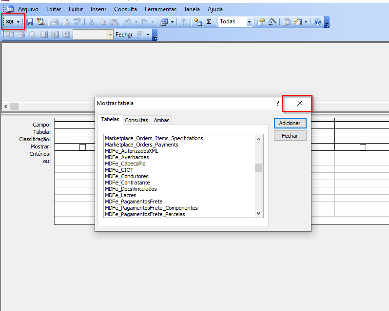 5 - Feche a caixa de seleção de Tabela