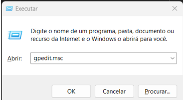 Passo 1: digitar o atalho Windows + R e digitar gpedit.msc como mostrado na imagem a baixo.