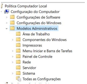 Passo 2: Com a tela do editor de politica de grupo aberta vá ate a pasta de modelos administrativos