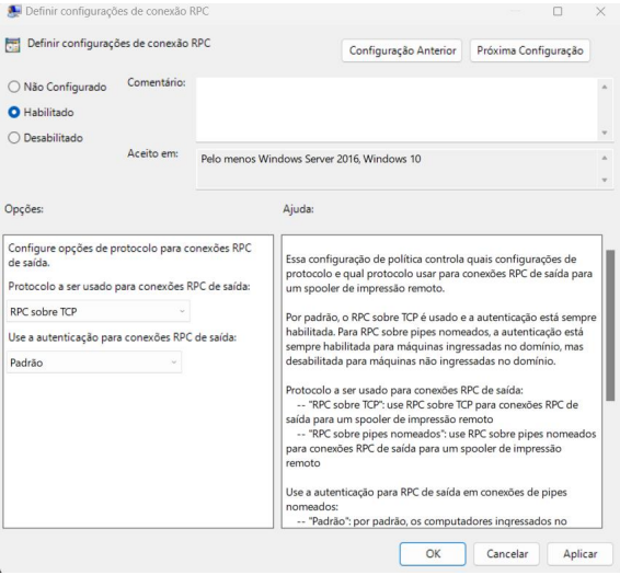 Va em impressoras e em DEFINIR CONFIGURAÇÕES DE CONEXÃO RCP