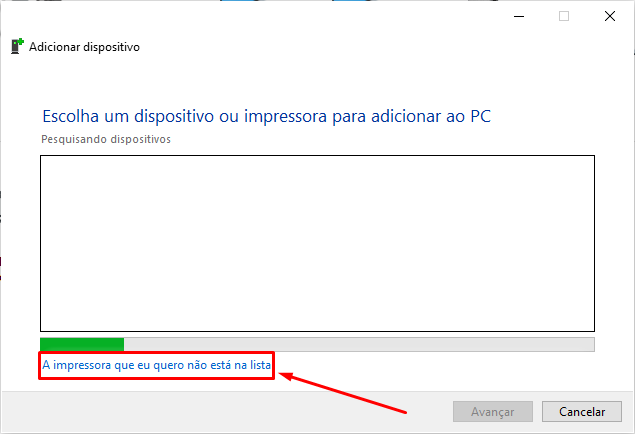 Passo 3: Após cliente o Windows irá buscar as impressoras. Em seguida ir na opção " a impressora que eu quero não esta na lista ".